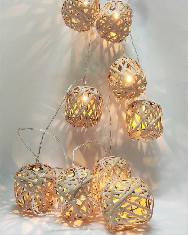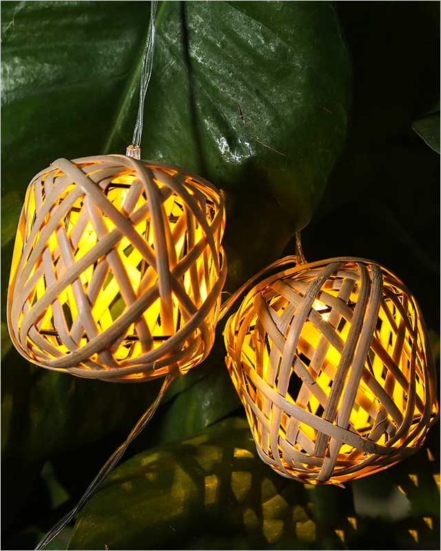 · Set/10 Nature Bamboo Rattan Ball LED Fairy String Lights