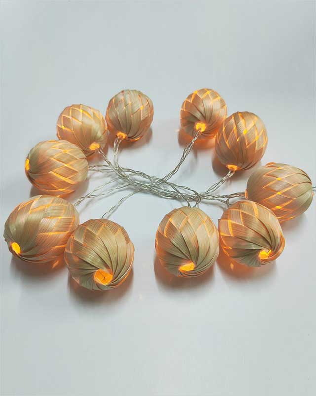 · Set/10 Nature Bamboo Rattan Ball LED Fairy String Lights