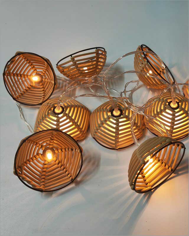 · Set/10 Faux Wicker Dome Lampshade LED Fairy String Lights